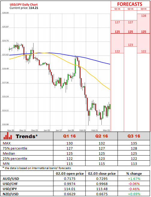 In addition to that, the ISM will deliver the potential market-moving indicator for the US when it publishes its non-manufacturing index for February on Thursday. Earlier in the week, the ISM reported that US manufacturing activity continued to shrink in February for the fifth consecutive month. The ISM index of purchasing managers rose to 49.5 last month, compared with 48.2 in January. Even though, the figure represented the highest reading since September 2015, the gauge remained below the key 50-mark threshold, which indicates a contraction in manufacturing that accounts for 12% of the US economy.
