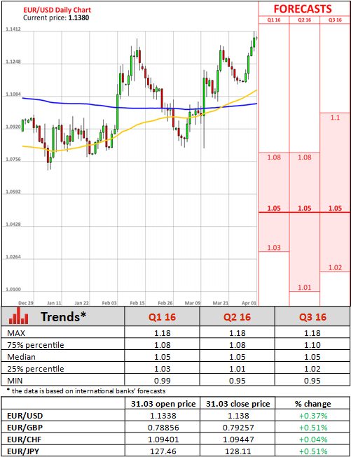 "Looking ahead, euro-zone inflation is likely to remain close to zero in the next few months before edging higher in the second half of the year as negative energy effects finally fade"