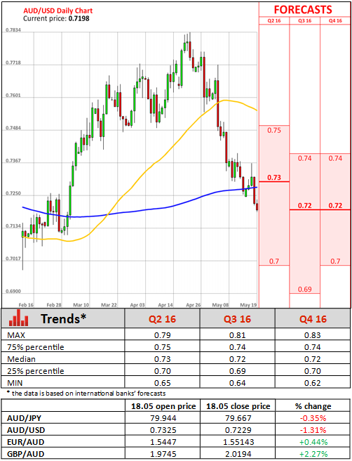 The RBA this week said that data suggested employment would continue to increase, albeit at a somewhat slower pace than over the previous year. Australia's unemployment rate is predicted to remain around 5.8% in 2016, according to the RBA's May Statement on Monetary Policy, before dropping at the end of the forecast period when GDP growth is expected to pick up. For now, stubbornly low inflation is the central bank's bigger concern. In the March quarter Australia's headline inflation rate slowed from 1.7% to 1.3%, but more importantly, core inflation also declined sharply, triggering the RBA's interest rate cut on May 3.