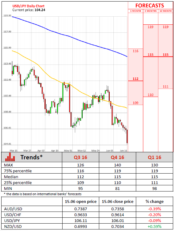 US Federal Reserve was forced to keep the target range for the Federal Funds rate flat at 0.25-0.50% after its June 14-15 meeting, owing to continuous risks to economic outlook and stagnating inflation expectations. Domestic data has been uneven recently, with mild payrolls report considered to be the key trigger for accepting the status-quo. All member of the Federal Open Market Committee (FOMC) voted for the decision, with Kansas City Fed President Esther George abandoning her hawkish call to raise the benchmark by 25 basis points. Janet Yellen, the Chair, agreed that there are some downside forces to interest rates that may be long-lasting. On the short-term basis, she admitted that the upcoming UK referendum on EU membership has weighed on the Fed's decision to postpone the upward revision to the Fed Funds target range.