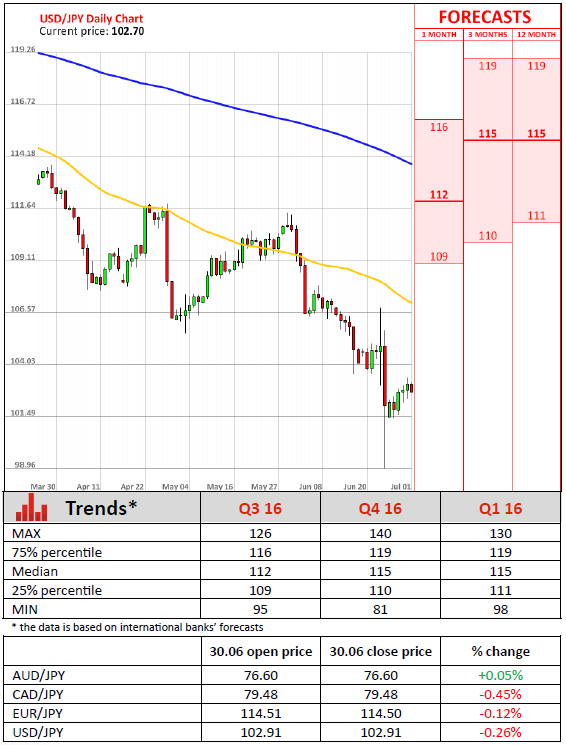 In the meantime, economists are worried that Japanese economic outlook could worsen, which could spur the BOJ to act. Moreover, the stated above data did not reflect the effects of the UK Brexit referendum which was held during the previous week. The yen, in turn, has strengthened 3.2% after the UK vote, thus, making Japanese exports less competitive and attractive.