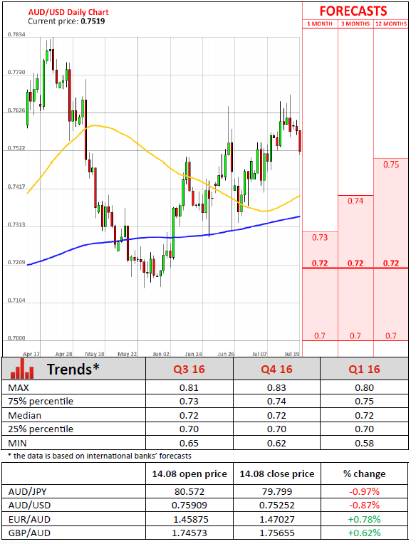 Minutes from the RBA's July policy meeting signaled that an August rate cut could be coming, but that staff would be providing updated economic forecasts before the next Statement of Monetary Policy to help assess whether further easing was necessary. Thus, officials at the Reserve Bank of Australia are awaiting further information on growth and inflation before deciding whether to adjust monetary policy. Earlier this month the RBA voted to keep its benchmark interest rate at 1.75% . That was the second consecutive month interest rates have remained on hold. Policymakers voted to cut the benchmark rate by 25 basis points to 1.75% in May, a new all-time low.