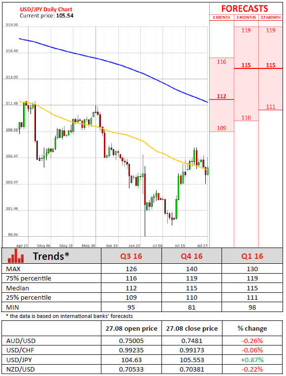 Other data released on Tuesday showed that the mood of shoppers across the United States worsened less than expected in the seventh month of the year, as the Conference Board Consumer Confidence Index dropped to 97.3 points in July, whereas economic desks predicted a steeper deceleration to 95.6 in the reported month. Meanwhile, last month's figure was revised down to 97.4 from the prior reading of 98.0 points, which was the highest since January. Furthermore, it appeared that Britain's recent decision to leave the European Union did not have any significant impact on American consumers.