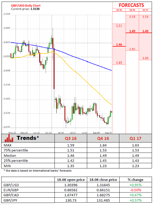 The data covered the four-week period from July 3 to 30 after the United Kingdom voted to leave the European Union; however, analysts suggest that the reaction of the economy may be delayed by a couple of months. Moreover, they assume that the sales growth was driven mainly by the weaker Pound. Following the release, the British Pound jumped 0.4% against the US Dollar and 0.2% against the Euro.