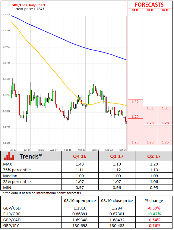 UK manufacturing activity rose to its highest l in more than two years, as the level new export orders surged on the weaker British Pound, a private survey revealed on Monday. According to Markit/CIPS, the Purchasing Managers' Index advanced to 55.4 in September, its highest level since June 2014, compared to the preceding month's 53.4 points, while market analysts anticipated a slight deceleration to 52.1 in the reported period. Back in July, the PMI dropped to 48.2 points amid Britain's decision to leave the European Union. September's growth was led by the consumer goods sector, whereas export orders jumped at the fastest pace since January 2014. While the weaker currency helped boost exports, it also led to higher imported raw material costs. Investors are likely to keep a close eye on UK's crucial services PMI data for September, scheduled for release on Wednesday. In the United Kingdom, the share of services in GDP is around 80%.