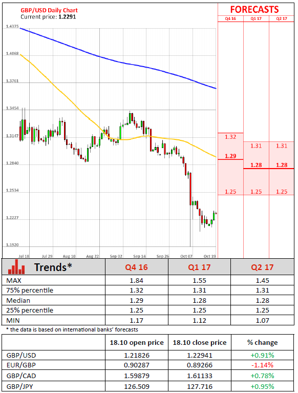 UK consumer prices expended at the fastest annual pace in nearly two years during the previous month. According to the Office for National Statistic, the annual rate of CPI inflation equals 1%, up from 0.6%in August and slightly higher than economists had been expecting. It is worth to point out, that this is the biggest monthly increase in the cost of household goods and services since November 2014. The following jump in inflation will cost poorer households around 100 pounds each, as their benefits will not advance in line with CPI. Meanwhile, the main upward pressure on consumer price index came from an acceleration of clothing and footwear price tags - namely women's clothes. The clothing prices went up 6% between August and September, compared a 3.3% rise over the same period last year. Moreover, the Office for National Statistics highlighted there were no 'explicit' signs that the weakness of the sterling contributed to the rose in CPI.