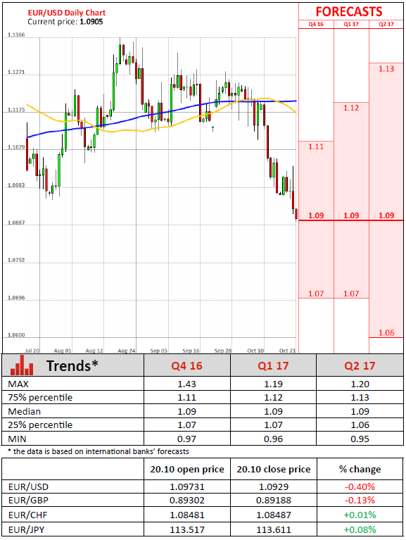 The European Central Bank left interest rates on hold and kept its 1.74 trillion euro ($1.95 trillion) asset buying scheme running in order to boost economic growth and inflation at its October monetary policy meeting on Thursday. As analysts predicted, the benchmark overnight deposit interest rate was left unchanged at -0.40%; however, the majority of them expect the Bank to announce an extension of asset purchases at the Governing Council meeting in December. Furthermore, the Central bank said it continues to expect the key interest rates to remain at present or even lower levels for an extended period of time, and well past the horizon of the net asset purchases. It also noted that the 80 billion euro asset purchase program is intended to run until March 2017, or beyond, if necessary to raise inflation. Back in September, inflation reached its highest level since 2014, albeit that level was just 0.4%, and according to the latest forecasts released by the ECB it is unlikely to hit its close to 2% target until the end of 2018 or early 2019. The ECB, in response to weak growth, low inflation and high unemployment, was forced to provide additional monetary stimulus, cutting interest rates into the negative territory and launching its QE program.