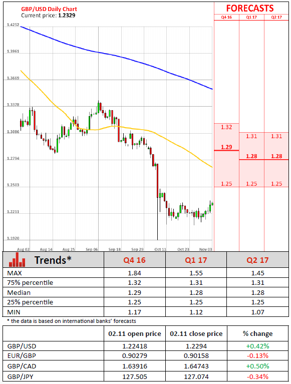UK construction industry grew at its fastest pace in six months in October despite the post-Brexit uncertainty, official data revealed on Wednesday. Markit/CIPS said its Construction Purchasing Managers' Index for Britain jumped unexpectedly to 52.6 points last month, up from September's 52.3 points, while market analysts anticipated a slight deceleration to 51.9 in October. Any reading above the 50 point-level indicates an expansion in the construction sector. Overall, even though these numbers were better than expected, the outlook for the British construction sector remains weak amid declining new orders and rising costs. Back in June, the Construction PMI slipped into contractionary territory following the UK's vote to leave the European Union, falling to 46.0 from May's 51.2 points, the lowest level since the global financial crisis. The weak Sterling is expected to force the Bank of England to revise upwards its inflation forecasts during the November policy meeting on Thursday, but it is not expected to cut interest rates further. After the release, the British Pound rose slightly against other major currencies, trading at 1.12263 against the US Dollar, 127.07 against the Japanese Yen and 0.9036 against the Euro by on the London Stock Exchange.