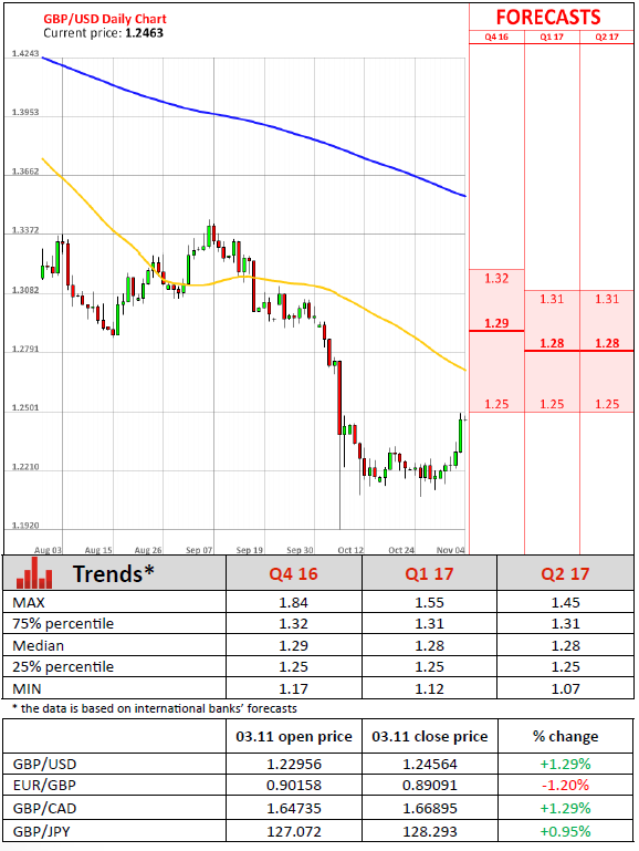 The Bank of England left its key interest rates on hold but revised upwards its growth and inflation forecasts at its monetary policy meeting on Thursday. Policymakers voted anonymously to keep the benchmark rate unchanged at 0.25%, which was cut in August. Furthermore, the Central bank kept its corporate and government bond-purchase programs unchanged at 10 billion and 435 billion pounds, respectively. Meanwhile, the 2017 inflation forecast was revised up to 2.7% from 2.0% estimated in August, following the weak British Pound. However, inflation is expected to cool down by the end of 2019, falling to 2.5% and further. The 2016 GDP forecast was revised up to 2.2% from August's 2.0%, supported by the stronger than expected household spending, rebound in the housing market and improvements in both business and sentiment indicators despite the uncertainty caused by the Brexit vote. Moreover, the Bank of England revised up its GDP growth projections for 2017 to 1.4% from the previous estimate of 0.8%. The Bank noted that output growth is expected to be stronger in the near-term but weaker than previously estimated. Therefore, the 2018 GDP forecast was revised down to 1.5% from August's estimate pf 1.8%.