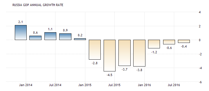 November 9 brought two different kinds of news for the Russian economy. First, the latest World Bank forecast on the Russian internal indicators came to light, showing expectations for 2016 GDP growth still in the red zone with a 0.6% contraction, but estimating 2017 growth at 15% and 2017 growth at 1.7% respectively. The forecast is in line with Russia's Ministry of Economic Development, which predict a recession between 0.5% and 0.7%. In June, the World Bank set its estimates at a 1.2% fall in GDP, painting a much gloomier picture. Second, Donald Trump won what emerged to be a nasty election, getting hopes up for Russian investors. Interestingly, both of these news still give little to no certainty on what comes next for Russia.