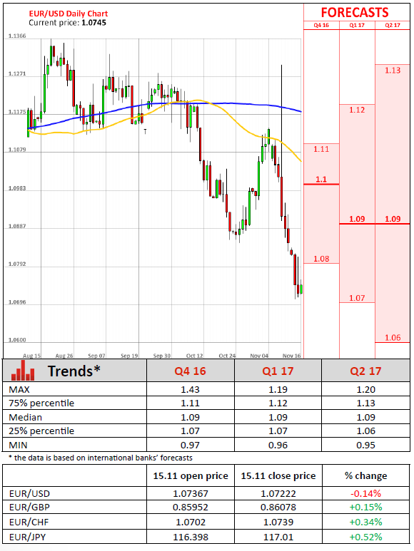 In the meantime European stocks were mixed on Tuesday, as market sentiment remained globally positive following the election of Donald Trump as president of the United States last week, while disappointing German third-quarter growth weighed. Moreover, earlier on Tuesday, preliminary data showed that German gross domestic product went up 2% in the third quarter, disappointing expectations for an increase of 0.3% and down from a growth rate of 0.4% in the previous quarter.
