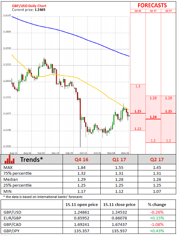 British consumer prices dropped unexpectedly last month, despite the steep fall in the value of the British Pound after the Brexit vote, official data showed on Tuesday. According to the Office for National Statistics, the Consumer Price Index advanced 0.9% year-over-year in October, compared to the preceding month's 1.0% rise. That was below the 1.1% market forecast, who suggested that the weak Sterling would lift inflation last month. Nevertheless, the ONS said factory gate prices increased 2.1%, faster than expected and the largest increase since April 2012. Furthermore, the Producer Price Index jumped 4.6% on a monthly basis in the reported month, after rising just 0.1% in the previous month, whereas economists penciled in an increase of 1.6%. Meanwhile, the Retail Price Index came in at 2.0% in October, unchanged from the same month one year ago. In addition, the ONS reported the so-called core inflation rate declined to 1.2% from September's 1.5%, falling behind analysts' expectations of 1.4%. UK inflation remained below the Bank of England's target of 2% for almost three years already. According to the Bank of England's latest inflation forecasts published earlier this month, UK inflation is expected to climb to 2.7% by this time next year.