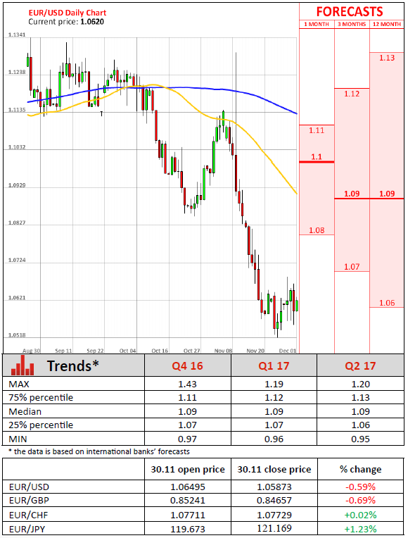 Consumer prices climbed in the Euro zone last month, official figures revealed on Wednesday. According to the Eurostat, the CPI came in at annualized 0.6% in November, up from 0.5% rise in October, the largest gain since May 2014. On a yearly basis, the core CPI came in at 0.8% unchanged from the prior month and matching analysts' expectations. The slump in energy prices was fractionally higher at annual 1.1% compared with 0.9% previously. In the meantime, oil prices felt from the highest level in October, though stayed greater than the 7.3% decrease in November 2015. The yearly growth in food and beverages prices advanced to 0.7% from 0.4% the previous month. The so-called core CPI, which excludes food, energy, alcohol and tobacco, held steady at 0.3% on an annual basis in the same month, meanwhile the service sector CPI was unchanged with a slight step lower from 1.2% in November 2015. Although core inflation holds at 0.8%, price increases stays below the European Central Bank aim of 2% despite sustaining an accommodative monetary stimulus.