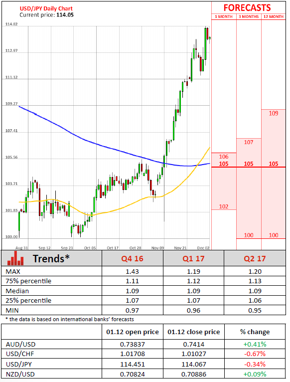 In the meantime, US manufacturing was stronger than expected in November, since the strong greenback remains a headache for producers in the sector. According to the Institute of Supply Management and Markit Economics, the ISM PMI went up to 53.2 in November (52.5 expected.) Regional data received over the past month suggested improvement in the sector and had pointed to a strong national reading.