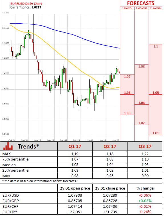 Separately, Markit also reported that the preliminary PMI Index for the German manufacturing sector climbed to 56.5 points from 55.6 in December, while the Services PMI fell to 53.2 points from 54.3. Both manufacturing and services sectors in Germany are set to grow in the upcoming months, despite ease in the private sector. According to the latest projections, companies are supposed to avoid political risks and focus on sales growth in 2017.