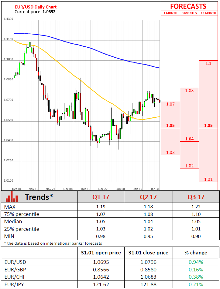 -Chris Beauchamp, IG Index Inflation in the Euro zone rose more than expected in January but remained below the European Central Bank's inflationary target. On Tuesday, Eurostat reported consumer prices advanced 1.8% on an annual basis in January, the highest level since February 2013, following December's 1.1% and surpassing analysts' expectations of 1.5%. In the meantime, the core Consumer Price Index, which excludes volatile items such as energy prices, came in at 0.9% year-over-year in January, unchanged from December and in line with market forecasts. Nevertheless, the ECB President Mario Draghi said policymakers would look beyond energy prices and seek further signs of rising underlying inflation in order to change the course of the Bank's monetary policy. Tuesday's data showed energy prices climbed 8.1% on a yearly basis in January after rising 2.6% in the preceding month, whereas the price of unprocessed food rose 3.3% year-over-year. Separately, Eurostat reported the Euro zone's economy advanced an annualized 2.0% on quarter in the three months to December 2016, while the US economy, the world's largest, grew at an annualized pace of 1.9% in the same period. Strong economic growth helped to lower the unemployment rate in the region, which dropped to 9.6% in December, the lowest level since May 2009.