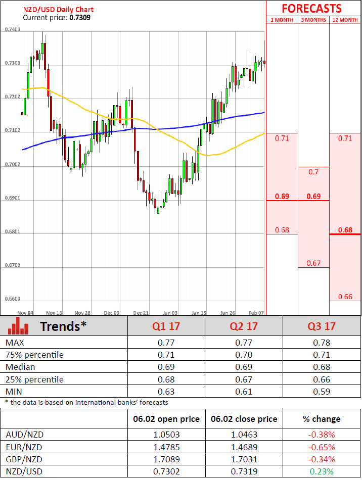 - Westpac New Zealand's inflation expectations advanced markedly in the first quarter of 2017, the latest quarterly survey revealed on Tuesday. In a report, the Reserve Bank of New Zealand said two-year inflation expectations climbed to 1.92% in the first quarter, the highest level since 2014, from 1.68% in the preceding quarter. However, inflation is expected to remain below the Central bank's inflationary target of 2%. The survey also showed that one-year inflation expectations that are less important for the Bank's monetary policy advanced to 1.56% from 1.29% in the previous quarter. Inflation expectations are closely followed by the RNBZ, as they provide advance knowledge of future inflation. Inflation expectations remained low over the past several years amid low headline inflation. Nevertheless, Tuesday's promising data combined with December's rise in headline inflation above 1% suggest that inflation might actually improve in the upcoming months. However, analysts say that inflation is unlikely to return to 2% in the near term. Moreover, rapid population growth and the economy's productive capacity put pressure on economic growth.