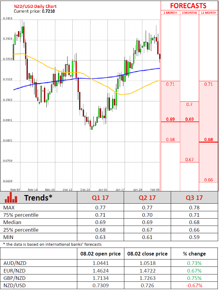 - Adam Cole, RBC Capital Markets New Zealand's Central bank left its benchmark interest rate unchanged on Wednesday and said it would be reasonable to keep the rate at record lows for an attended period of time. The statement caught analysts by surprise, as they widely expected the Reserve Bank of New Zealand to raise rates later this year. The Bank left its Official Cash Rate at a record low of 1.75% but signaled that rates would not go lower. After the policy meeting, he RBNZ Governor Graeme Wheeler said on Thursday the Bank would maintain a neutral stance in 2017, as the upside and downside risks appeared evenly balanced. Even though the New Zealand economy expanded at an annualized pace of more than 3%, Wheeler said that the strong Kiwi, which rose more than 10% in 2016, could continue to put downward pressure on imports, adding that inflation would likely remain below the Central bank inflationary target of 2%. As a result, analysts and investors now expect the rate to be kept at 1.75% until the beginning of 2018. Back in the Q4 of 2016, inflation climbed to 1.3%. The Bank estimated that the inflation rate would hit 2% in the Q2 of 2019. Moreover, the RBNZ said economic growth would rise to 3.7% on an annual basis in the Q1 of 2017. The New Zealand Dollar fell against its US counterpart to trade at 72.70, down 0.3% from ahead of the release.