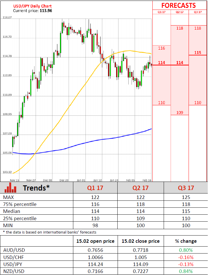 - Jennifer Lee, BMO Capital MarketsUS consumer prices posted the largest increase since February 2013 last month amid higher gasoline prices, keeping the Federal Reserve on course to raise interest rates further this year. The US Commerce Department reported on Wednesday its headline CPI climbed 0.6% month-over-month in January, while analysts expected the Index to remain unchanged from the prior month at 0.3%. Excluding volatile items, core consumer prices rose 0.3% last month, after growing 0.2% in December. The January inflation jump was mainly driven by higher gasoline, apparel and motor vehicles prices. On Tuesday, the Fed Chair Janet Yellen said the Bank would probably raise rates at its next policy meeting. Other data released by the Commerce Department on Wednesday showed retail sales advanced 0.4% in January after surging 1.0% in the previous month. However, analysts anticipated an increase of just 0.1% in the reported month. Furthermore, data showed core retail sales climbed 0.8% last month, following December's upwardly revised increase of 0.4%. A 1.6% rise in sales at electronics and appliances stores, the largest since June 2015, contributed the most to retail sales growth in January. Back in December, these stores posted a 1.1% drop in sales. In the meantime, automobile sales dropped 1.4%, the largest fall since March 2016, last month after surging 3.2% in December.