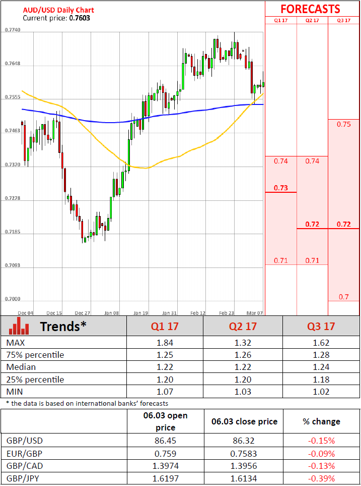 - Scott Haslem, UBS As markets expected, the Reserve Bank of Australia kept its key interest rate unchanged during its March policy meeting on Tuesday, pointing to rising real estate prices and soft inflation. Policymakers voted to leave the cash rate at 1.5%, despite solid growth and strong performance in the last quarter of 2016. Last year, housing demand hit its all-time high across the country despite high prices. Therefore, the decision to leave the rate on hold was driven for the most part by the RBA not wanting to inflame further the housing market. After the release, the Australian Dollar rose slightly against its US counterpart to trade at $76.17. Back in the Q4 of 2016, the Australian economy expanded 1.1% on a quarterly basis and 2.4% on an annual basis, suggesting better economic growth in 2017. However, the Q4 expansion was mainly driven by household spending financed by drawing down savings, while wage growth remained at record lows. The big question is whether the economy can maintain momentum over a longer period of time with the current unemployment rate of 5.7% and inflation mainly boosted by higher oil prices. The RBA Governor Philip Lowe said the Australian economy benefited a lot from China's strong economic performance, which was supported by higher spending on infrastructure and building construction.