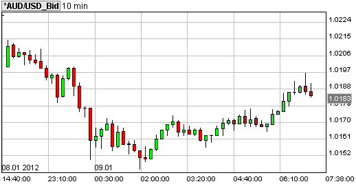nearly flat at $0.7802. Currently AUS/USD is trading at $1.0188 while