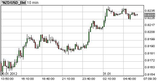 New Zealand and Australian Dollars appreciated sharply on Tuesday as European officials signalled they have taken measures to end two-year debt crisis. Both South pacific currencies also were fuelled by positive news about Australian business confidence and an increase in home building approvals in New Zealand. Aussie strengthened 0.3% to $1.0632 and Kiwi climbed 0.5% to $0.8233. Currently AUD/USD is trading at $1.0631 and NZD/USD is trading at $0.8231.