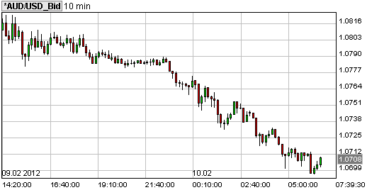 Australian currency weakened from close to 6-month high after RBA cut its predictions for inflation and GDP this year. Aussie fell 0.7% against greenback to USD 1.0714 and also gave up 0.7% against Japanese Yen to JPY 83.18. Meanwhile New Zealand Dollar lost 0.4% against its US peer to USD 0.8306 and tumbled 0.4% against Yen to JPY 64.50. Currently AUD/USD is trading at 1.0713 while NZD/USD is trading at 0.8305.