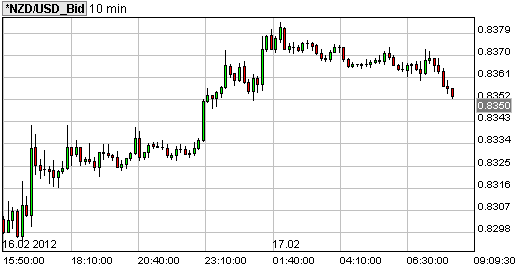 The New Zealand and Australian Dollars maintained weekly advances on news ECB is exchanging Greece's bills for new securities. Kiwi gained extra upward momentum as A. Bollard, New Zealand central bank's Governor claimed nation's economic performance to be understated. Kiwi appreciated 0.5% against US Dollar to USD 0.8368 while Aussie gained 0.2% to USD 1.0775. Currently AUD/USD is trading at USD 1.0757 and NZD/USD is trading at USD 0.8355.