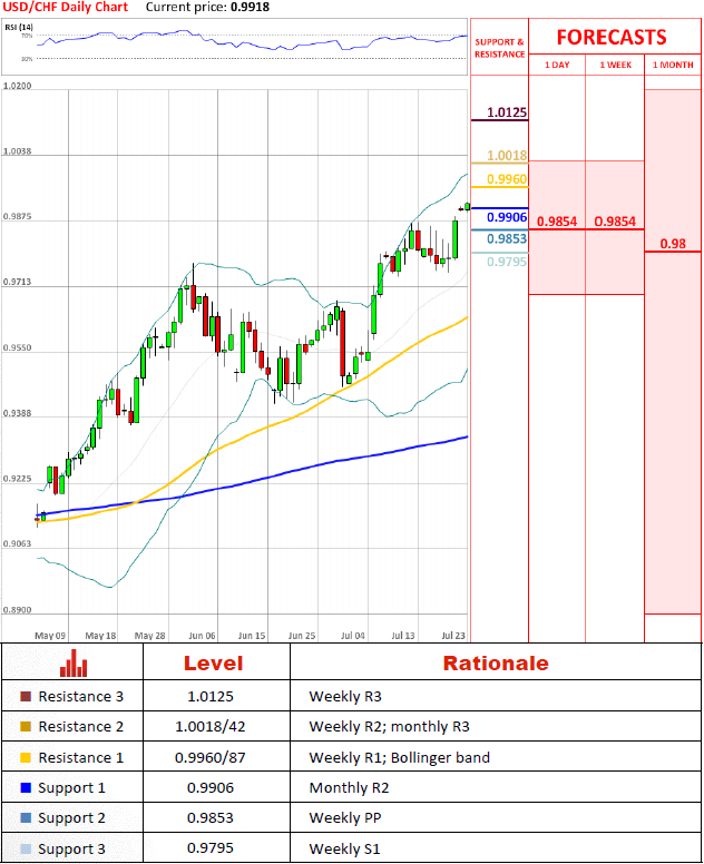 Since the last report USD/CHF has penetrated several resistances and is about to confirm a break of 0.9906 today, above which it will aim for 0.9960/87 first, then for 1.0018/42. The nearest support is located at 0.9853, followed by 0.9795, though a key level is situated at 0.9692/88, safety of which preserves bullish outlook of the price in the long-term.