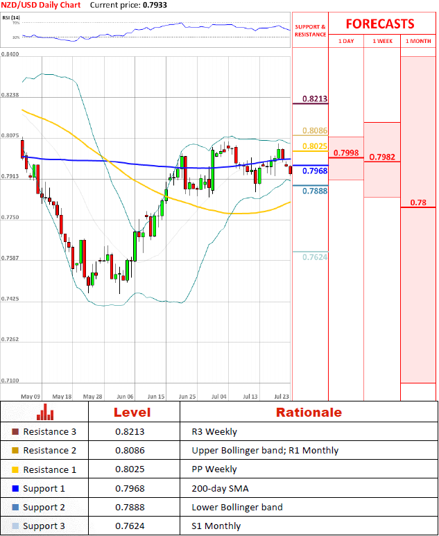 Traders' SentimentSWFX sentiment index points to a definite pair's depreciation, eyeing the 1M forecast of 0.7800, as almost 64% of traders plan to open short positions on NZD/USD in near term. Only 36% of market participants believe in pair's recovery and a move upwards to 0.7982/98.