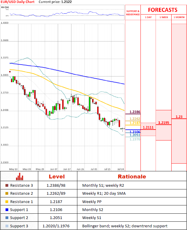 EUR/USD remains flat just above 1.2106, but is expected to recommence inching lower, being that indicators for daily and monthly timeframes are mostly bearish. Moreover, there are no formidable supports until 1.2020/1.1976, from where the pair might undergo a prolonged bullish correction due to a strong downtrend support.