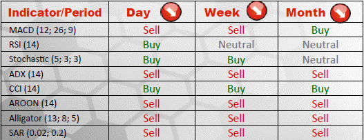 The proportion of bullish traders on SWFX index has increased to 69% for AUD/USD, supported by the technical indicators. However 31% of traders believe in pair's depreciation, in line with the weekly aggregate-indicator outlook. As RSI indicator is deep in the neutral area, we are likely to see the sentiment balancing out in near-term.