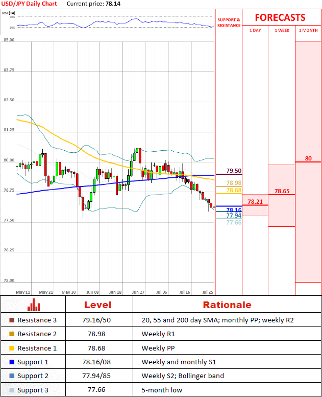 The currency pair is closing in on a recent low of 77.66, though will need first to push through two consecutive support zones at 78.16/08 and 77.94/85, the first of which has been already partially eroded. Subsequent levels are to be found at 77.33 and 76.59/39, whereas resistance that lies at 78.68, in conjunction with 78.98/79.19 and 79.25/50, will cap the price in the meantime.