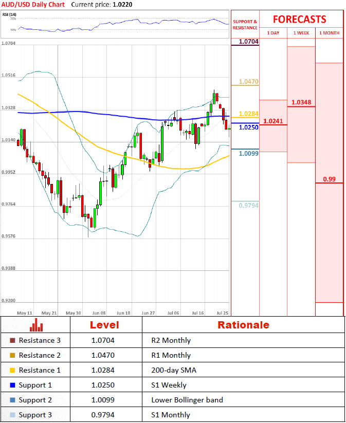 "Some of the adjustments we have been seeing, as awkward as they might seem, are actually strengthening resilience to possible future shocks."- Glenn Stevens, governor of RBA (based on CQ News)Pair's OutlookThe upward trend of AUD/USD has been continuing for two months now, forming an upward channel. We are likely to see lots of bullish potential today with the pair en-route to 1.0376 (200-day SMA) and 1.0390 (upper Bollinger band) in near term. At such pace, the pair is likely to reach 1.0856 (2012 high) around September 10.