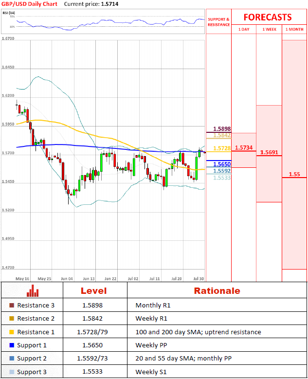 Extension of cable's appreciation was denied by 100 and 200 day SMAs in conjunction with an uptrend resistance at 1.5728/79. This wide but nonetheless dense zone is expected to cap the currency pair for a prolonged period of time, being that most of mid and long-term technical studies suggest resumption of bearish activity and thereby of pair's focus on supports at 1.5650 and 1.5592/73.