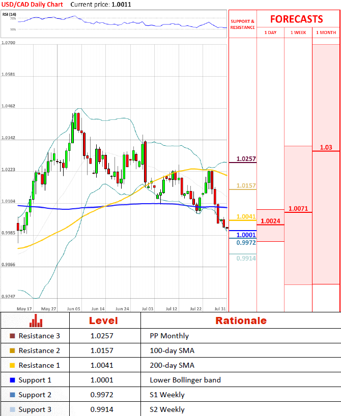 The pair is unexpectedly continuing its downward movement, and is currently moving closer towards the weekly S1 at 0.9972. However, RSI (14) is likely to give a Buy signal in near term, so a bullish correction is highly probable. In such case, USD/CAD would be en-route towards the 200-day SMA at 1.0041.