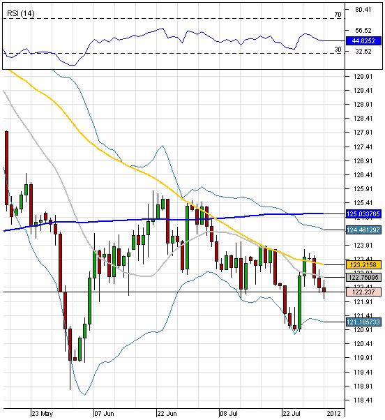 Bollinger band at 121.185 might turn out to be strong enough to bring some