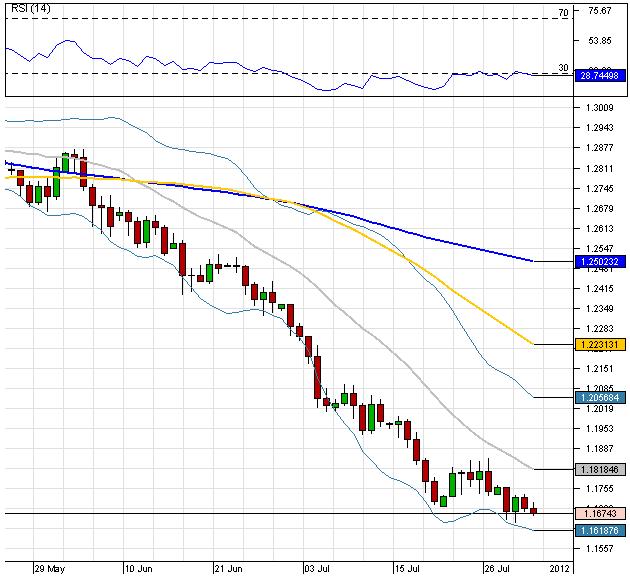 while slowly approaching Weekly S2 at 1.1653, where it might gain some bullish