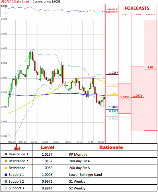 Yesterday USD/CAD was trading close to the 200-day SMA at 1.0085, though the currency couple bounced from this line today and currently bears have chances to strengthen a bearish trend. If this is the case, then 1.008 (Lower Bollinger band) is going to be the first support level, followed by 0.9972 (S1 Weekly) and 0.9914 (S2 Weekly) in case of a successful breakout.