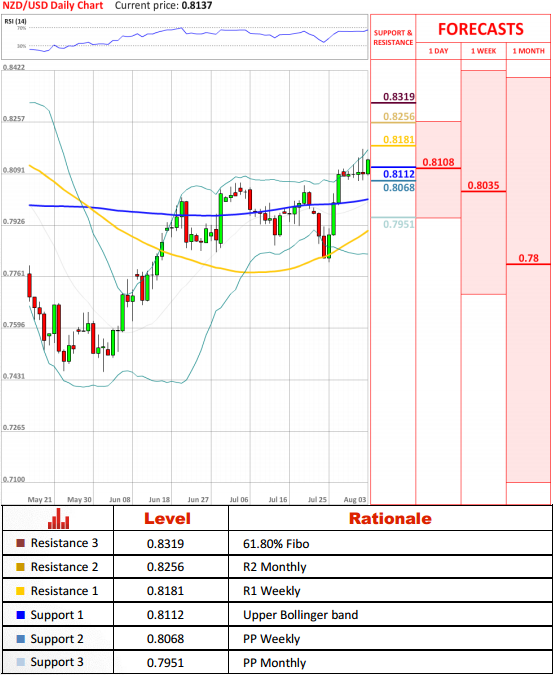 The New Zealand dollar advanced confidently further and right now 0.8181 (R1 Weekly) is open for bullish traders. Thus, if bullish momentum holds further, 0.8256 (R2 Monthly) is likely to be hit first. A breakout here would pave the way towards the third resistance level at 0.8319 (61.80% Fibo).