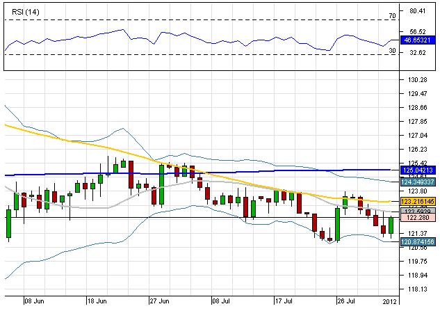 Current support levels are at 121.58, 121.36 and 120.87 and presently there are