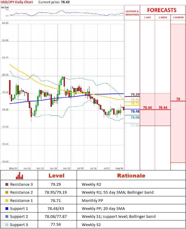 USD/JPY has pierced through a downtrend resistance, but proved to be incapable of surging further by bouncing off 78.71. An interim support at 78.48/43 is being eroded and may soon give in, allowing the price to drop to 78.08/77.87, below which lies subsequent levels at 77.56 and 77.34/21. In order to change the long-term outlook to bullish, USD/JPY will have to overcome 79.48/55.