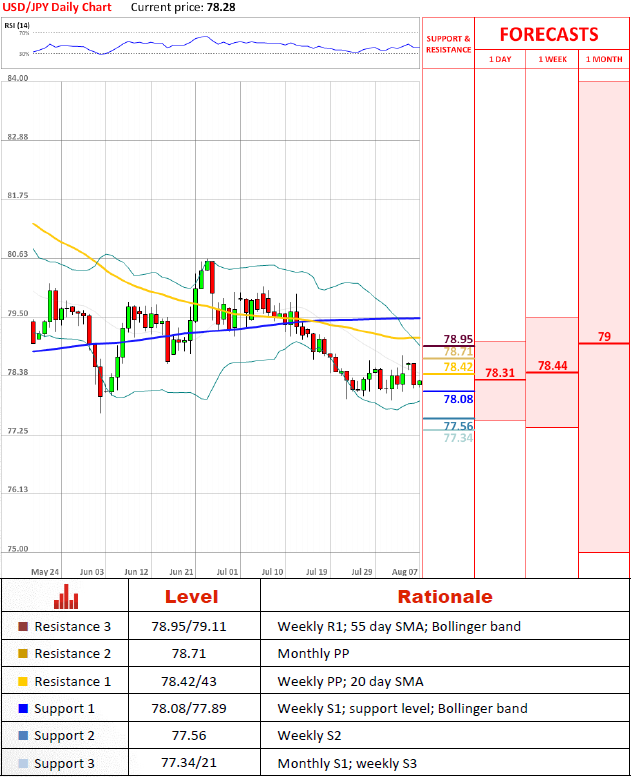 USD/JPY commences another attempt to recover after breaking out of a downtrend resistance. According to technical indicators the bullish momentum, however, is not strong enough to be capable of overcoming all the resistances that are scattered overhead and are preventing prolonged rallies. The initial obstacle is located at 78.42/43, followed by 78.71 and 78.95/79.11.