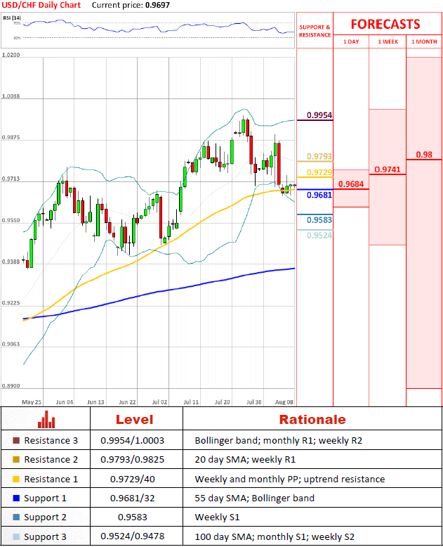 USD/CHF is flat and unwilling to make a distinct move at the moment. Leg up has a higher chance of appearing, though, judging by technical indicators, we might observe some more wobbling prior to a full-blown rally. An initial resistance is at 0.9729/40, while subsequent levels are located at 0.9793/0.9825 and 0.9954/1.0003 and will hamper appreciation of the greenback.