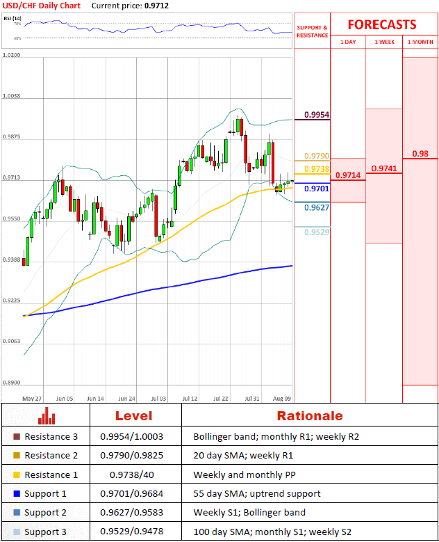 USD/CHF is crawling higher along an uptrend support line and 55 day SMA, while volatility in the markets has vanished ahead of the weekend. An initial obstacle lies at 0.9738/40, followed by a resistance zone at 0.9790/0.9825, while likely further advancement of the pair will encounter a much more stronger area at 0.9954/1.0003.
