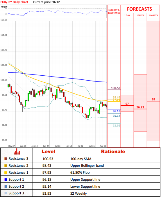 The Euro moved lower against the Japanese Yen, commencing a bearish correction. If bearish momentum holds, 96.18 (Upper support line) is likely become an initial support level for bearish traders. A breakout of this level would expose 95.14 (Lower Support line) and 92.93 (S2 Weekly), respectively.