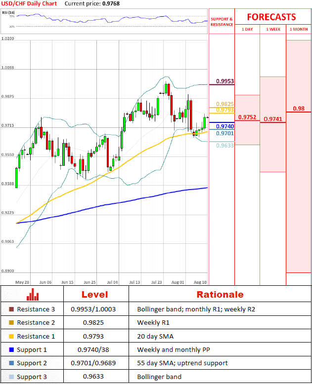 Market respected an uptrend support at 0.9701 and pushed USD/CHF higher, towards an interim level at 0.9793. Additional resistance is at 0.9825, but is viewed too weak to negate an upward impetus the pair had received. Medium-term target is at 0.9953/1.0003, though technical indicators largely remain quiet at the moment and do not support bullish outlook.