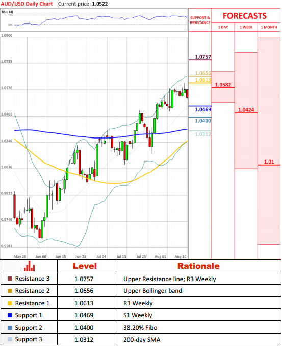 The Aussie dollar took a plunge against the US dollar and right it is likely to keep bearish momentum over the short run. If this is the case, 1.0469 (S1 Weekly) is going to be an initial support line for investors, followed by 1.0400 (38.20% Fibo) and 1.0312 (200-day SMA) once bearish momentum strengthens.
