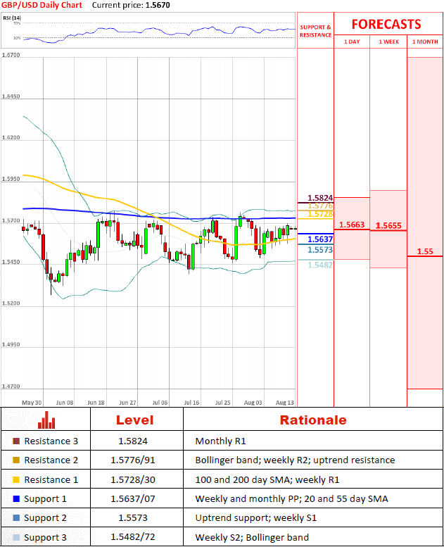 GBP/USD hovers just above a formidable support area at 1.5637/07 and thus should challenge resistance at 1.5728/30 prior to a dip back to this zone. Moreover, technical indicators also suggest a tepid rally before another down leg, which might extend down to 1.5249/33, given that 1.5573 is breached and 1.5482/72 and 1.5450/19 does not provide sufficient support.