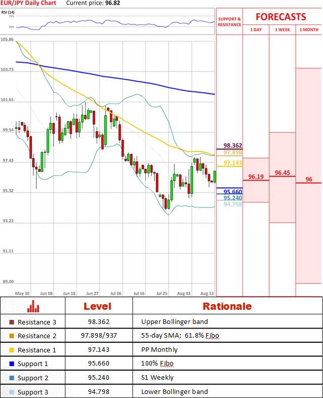 Pair's double bottom pattern is signalling a further augmentation of the pair. However, it is highly likely that such a development will be rather slow and, at least for the nearest future, pair will be trading between 97.143 and 95.660.